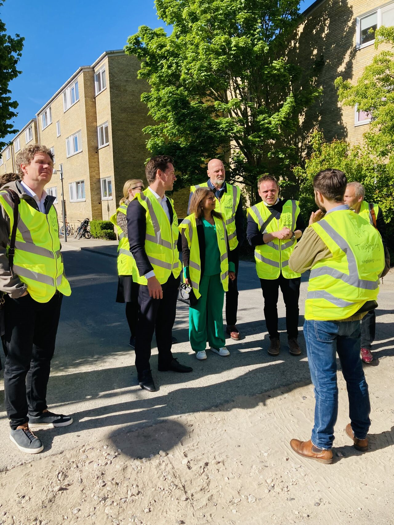 Herefter gik turen videre ud i Tingbjergs gader – i høj sol og med masser af inspiration. Rune Lyngvig Jespersen og Morten Birkbak Madsen fortalte levende om områdets udviklingsplan, hvor nye rækkehuse bliver bygget mellem de eksisterende boligblokke, og hvor der i stigende grad kommer liv gennem nye butikker, spisesteder og kulturtilbud. Det nye kulturhus er allerede blevet et vigtigt samlingspunkt, og der er store planer for fremtiden – blandt andet en ny vej, der skal forbinde Tingbjerg med Husum og en multihal, der forventes at stå klar i 2029 med støtte fra A.P. Møllerske Støttefond og Københavns Kommune.